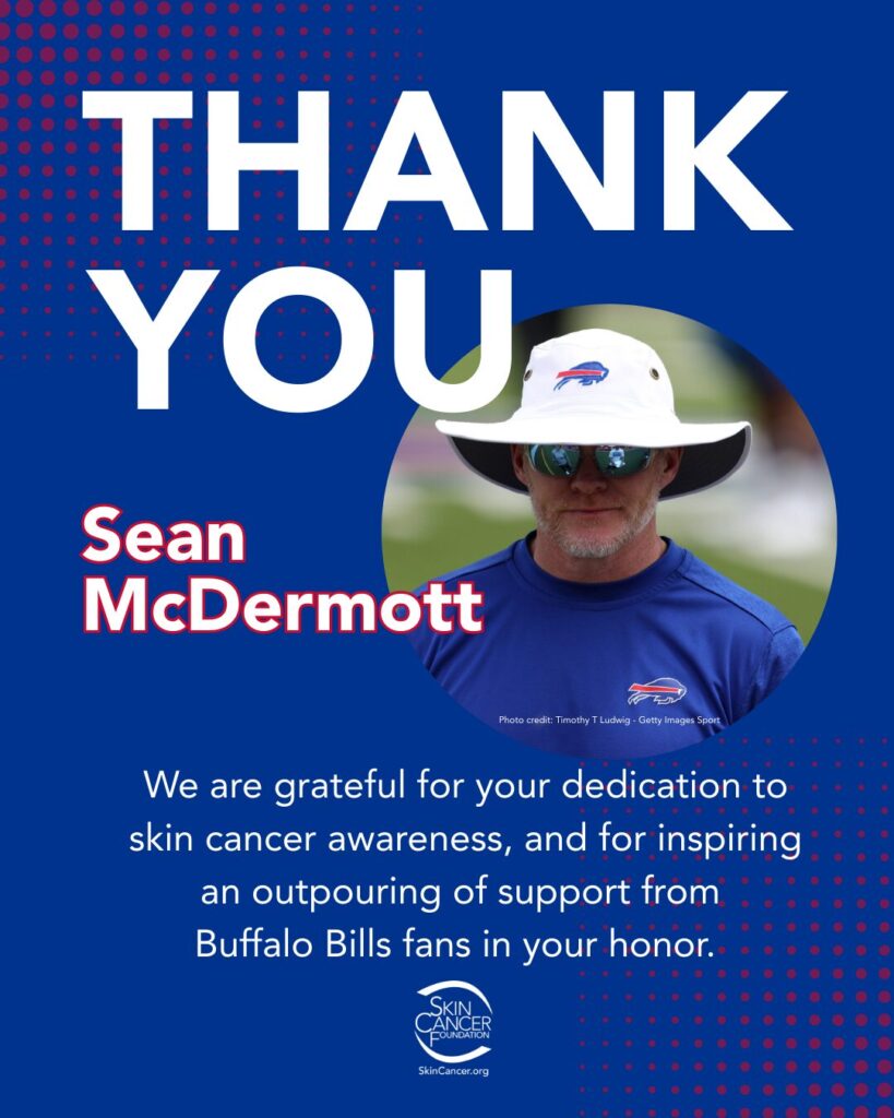We are grateful to Coach McDermott for inspiring fans to join the fight against skin cancer and were honored to work with him on a skin cancer awareness public service announcement. We know that his passion for sun protection inspired many people to take skin cancer more seriously.